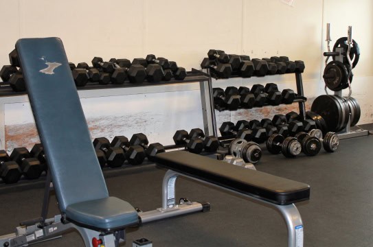 There’s a selection of free weights, weight lifting machinery and cardio equipment in the Red Chris fitness room