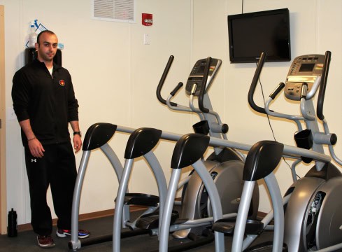 Moe with some of the cardio equipment available for Red Chris employees in the fitness room