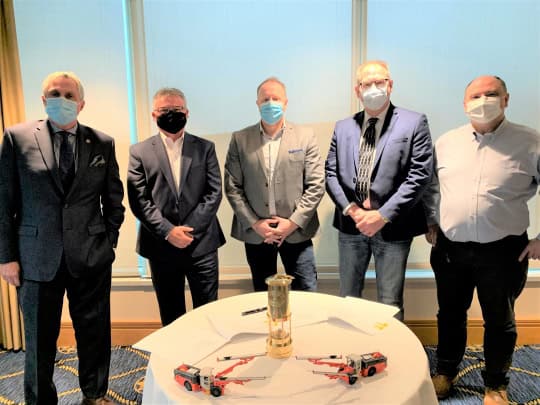 Representatives from Sandvik Canada and Tahltan Nation Development Corporation (TNDC) following signing of the distribution agreement, which will see TNDC become a reseller of Sandvik Mining and Rock Solutions and Sandvik Rock Processing Solutions products to northwestern British Columbia and Yukon. L-R: Dany Gaudreault (Sandvik Canada’s Indigenous Engagement Manager), Peter Corcoran (Sandvik Canada’s managing director), Paul Gruner (TNDC’s chief executive officer), Jamie Gleason (TNDC board member), Rob McPhee (TNDC’s VP partnerships & growth).