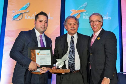 TNDC CEO/President Garry Merkel and board chair Calvin Carlick accepted the award, which was presented by BC Minister of Aboriginal Relations and Reconciliation John Rustad at a gala ceremony in Vancouver. TNDC was delighted to have a number of its workers, managers and board members, business and industry partners and Tahltan leaders on hand to celebrate in the occasion.