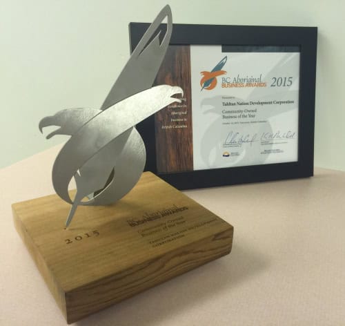 October 14, 2015 was a night of honour and celebration for TNDC when it received the BC Aboriginal Business Award for Community-Owned Business of the Year from the British Columbia Achievement Foundation. The prestigious award recognizes TNDC’s contribution to creating a strong economy for the Tahltan community.