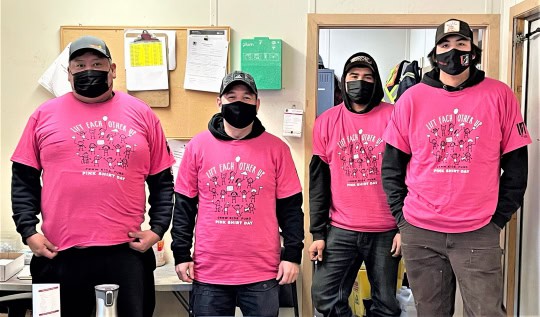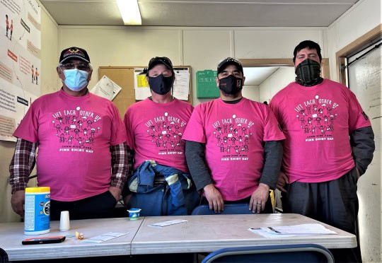The TNDC team took a collective stand against bullying on February 23, 2022, celebrating Pink Shirt Day, to be advocates for kindness, acceptance, respect and inclusion for everyone we work with. Team members across business areas and project sites donned pink shirts emblazoned with the message Lift Each Other Up!  Held the last Wednesday in February, Pink Shirt Day is recognized as National Anti-Bullying Day in Canada.
